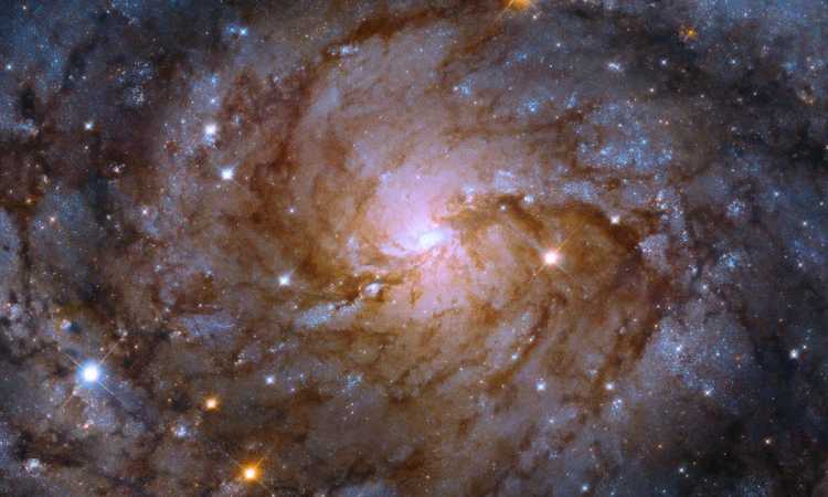 سجل تلسكوب هابل الفضائى لقطة لمجرة حلزونية مخبأة خلف مجرة درب التبانة نتيجة الغبار والغازات الفضائية.