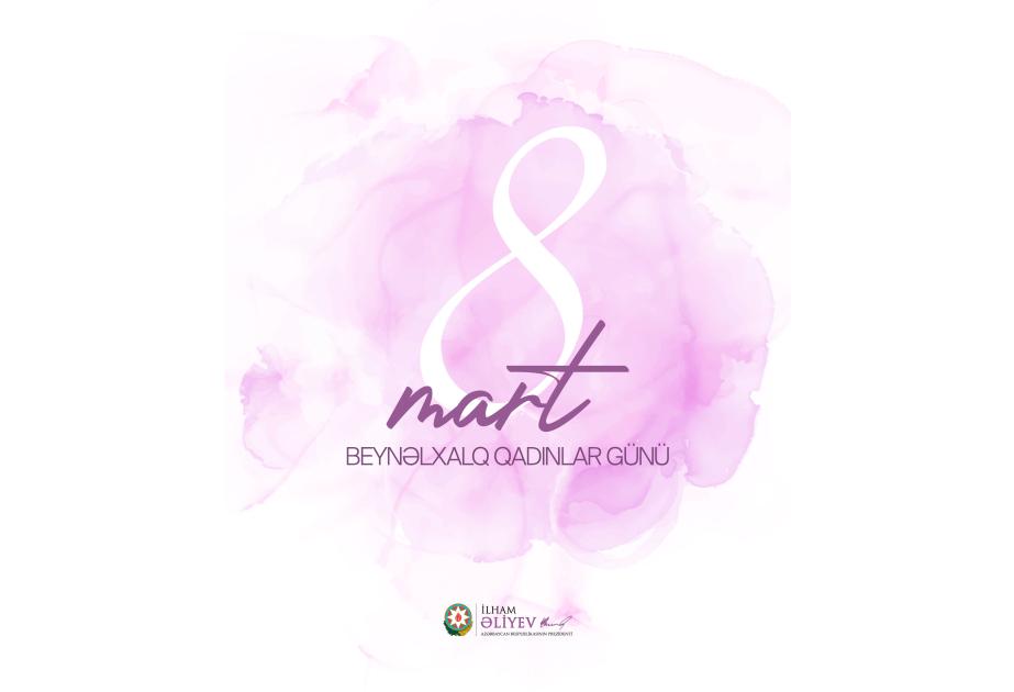 نشر الرئيس الأذربيجاني إلهام علييف تهنئة عبر حساباته الرسمية على مواقع التواصل الاجتماعي بمناسبة اليوم العالمي للمرأة 8 مارس.