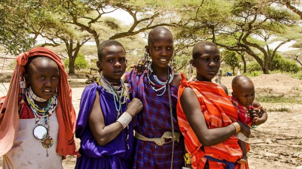 بعض السياح يلتقطون صور لأحد القرويين في ماساي
