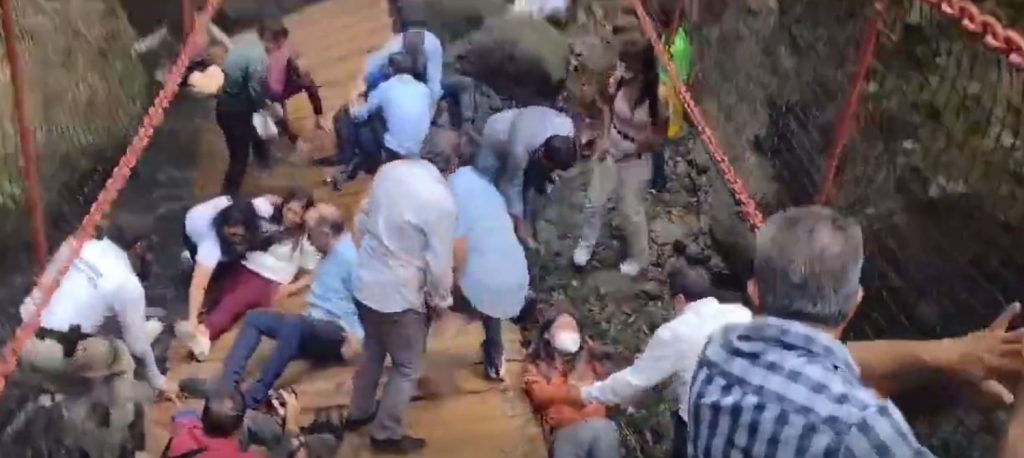 تداول رواد مواقع التواصل الاجتماعي مقطع فيديو لانهيار جسر معلق فى مدينة كويرنافاكا المكسيكية، فجأة أثناء مرور عدد من المسؤولين بالمدينة، ما أسفر عن إصابة ما لا يقل عن 8 أشخاص، وكان من بين المصابين في انهيار الجسر رئيس المدينة المكسيكية.