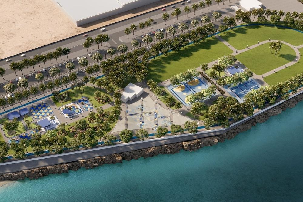 المنطقة الثانية: تحتوي على مساحة شاطئية رملية تتوسطها مقاعد خشبية، بينما المنطقة الثالثة، تشتمل على حديقة مغلقة تحتوي على مساحات خضراء كبيرة وأشجار، وساحات للاسترخاء والجلوس والتأمل، لخلق بيئة هادئة، بينما المنطقة الرابعة، تضم نقطة البداية للمشروع ولعبة الدامة التفاعلية (ذات قطع كبيرة الحجم)، إضافة إلى مساحات خضراء واسعة تسمح بممارسة الأنشطة الخارجية وساحات متعددة الاستخدامات.