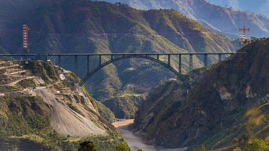 ويقع جسر “تشيناب” فوق نهر “تشيناب” في منطقة جامو وكشمير المثيرة للجدل بالهند، على ارتفاع 359 مترًا، أي أعلى من برج إيفل بنحو 29 مترًا.