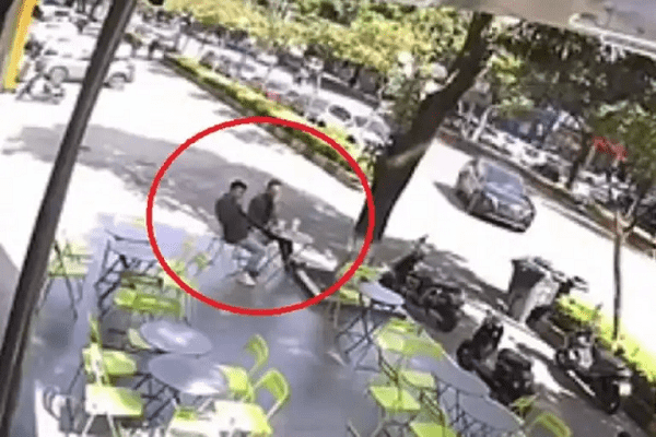 باغتت سيارة مسرعة شابان كانا يجلسان في أحد المقاهي الصينية ويحتسيان القهوة، لينجوا من الموت المحقق بـ “معجزة”.