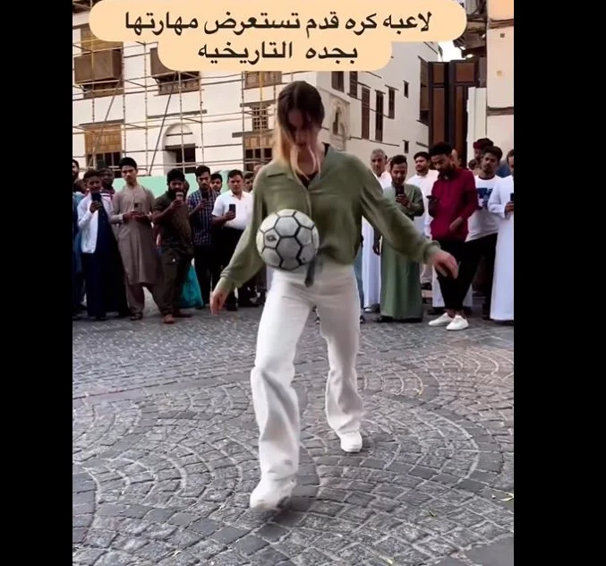تناقل رواد مواقع التواصل الإجتماعي مقطع فيديو حصد اهتمام واسع من المغردين للاعبة كرة قدم تستعرض مهاراتها المميزة في لعب وترويض الكرة في جدة التاريخية. ووثق الفيديو قيام الفتاة بترويض الكرة في وسط جدة التاريخية فيما التف حولها أشخاص وقاموا بتوثيق الحدث.