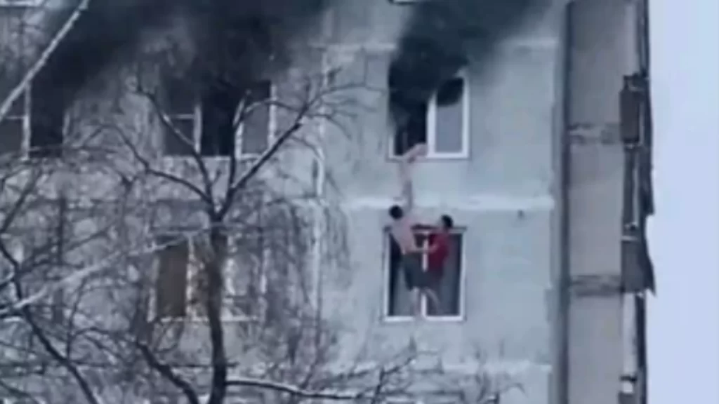 فقد انتشر مقطع مصور في وسائل التواصل الاجتماعي بروسيا، لعمارة سكنية احترقت إحدى شققها حيث هبّ اثنان من الجيران بالأسفل لمساعدة جارتهم التي حاصرتها النيران بفتح نافذتهم وسحبها معرضين حياتهم للخطر لإنقاذ حياتها.