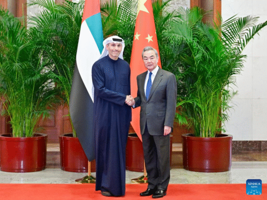 أدلى وانغ، وهو عضو المكتب السياسي للجنة المركزية للحزب الشيوعي الصيني ومدير مكتب لجنة الشؤون الخارجية للجنة المركزية للحزب، بهذه التصريحات خلال محادثاته في بكين مع خلدون خليفة المبارك، المبعوث الخاص لرئيس دولة الإمارات إلى الصين.