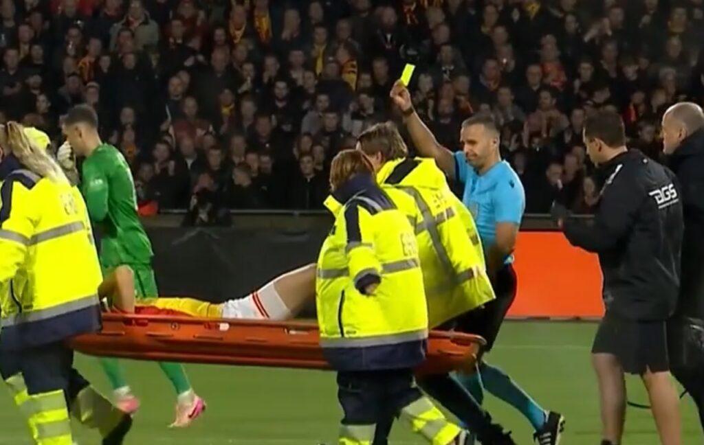 الحادثة وقعت في أول 15 دقيقة، عندما اضطر الطاقم الطبي لإخراج المدافع الألماني جيريت نوبر على نقالة بعد تدخل عنيف على لامار بولارد لاعب أستون فيلا.