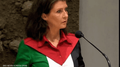 طُلب من النائبة الهولندية إيستير أوويهانت، مغادرة قاعة مجلس النواب، بعد ظهورها خلال مناقشة الميزانية مرتدية قميصا بألوان العلم الفلسطيني.
