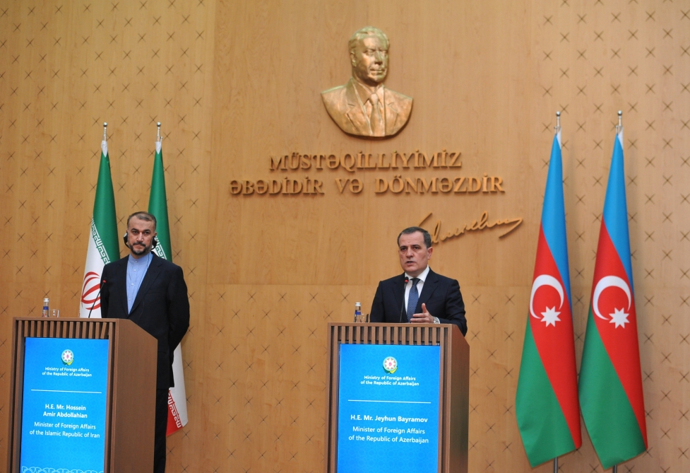 قال وزير الخارجية الأذربيجاني جيهون بايراموف في مؤتمر صحفي منعقد الليلة عقب لقاء عقده مع نظيره الإيراني حسين أمير عبد الله يان في باكو إن موقف إيران خلال حرب الـ44 يوما من معالجة القضية ضمن سلامة الأراضي وبوضع الحد للاحتلال أُيِّد به من جانب أذربيجان.