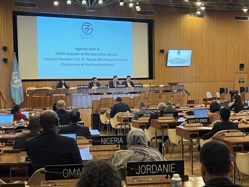 عقدت مجموعة الـ 77 والصين اجتماعاً دورياً في مقر اليونسكو برئاسة أذربيجان وبمشاركة رئيس المجلس التنفيذي للمنظمة ناصر بن حمد الحنزاب.