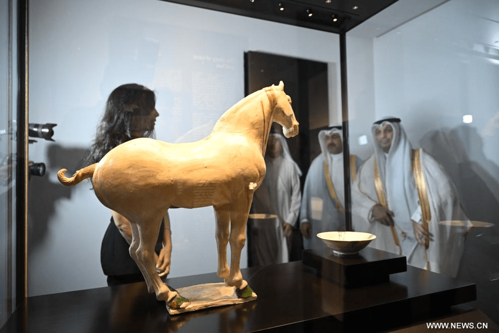 ويضم المعرض 128 قطعة أثرية متنوعة من مجموعة الصباح الأثرية توثق رحلة التبادل الفني والثقافي بين الحضارتين الصينية والإسلامية عبر آلاف السنين.