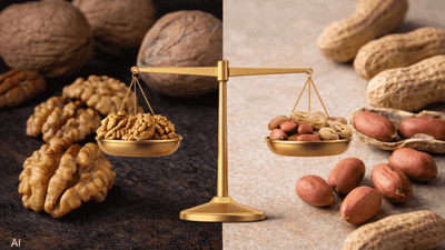 ولكل منهما مزاياه الغذائية الخاصة؛ إذ يتميّز الجوز بمحتوى أعلى من الدهون الصحية المفيدة للقلب، بينما يوفّر الفول السوداني كمية أكبر نسبيا من البروتين وبعض العناصر الغذائية.