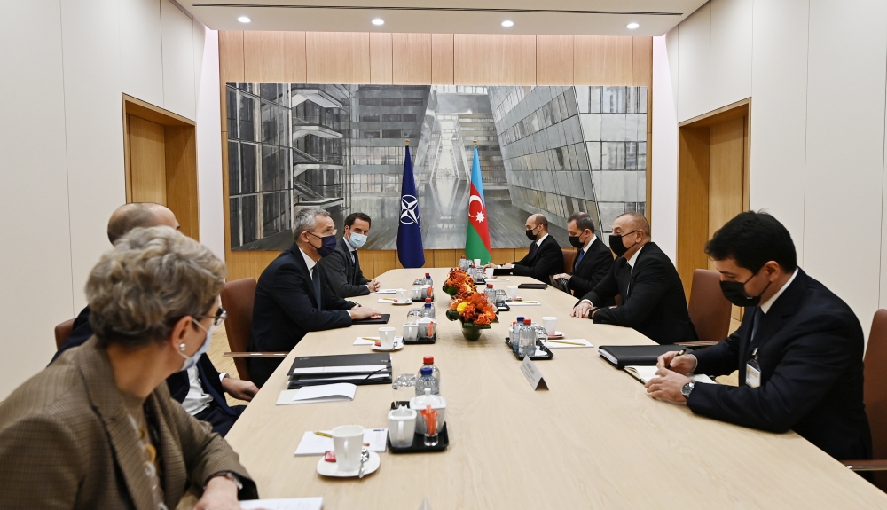 وذكر الرئيس الأذربيجاني انه ناقش مع السيد الأمين العام مسائل امن الطاقة في المنطقة، مضيفا لقد بلّغتُ السيد الأمين العام ان أذربيجان اليوم مصدر موثوق به للغاز الطبيعي الى 4 بلدان أعضاء في الناتو، و أنا متأكد من زيادة عددها في السنوات المقبلة.