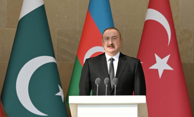 وأكد علييف، أن دولة باكستان وشعبها، قدمت الدعم والتضامن مع أذربيجان خلال الحرب الوطنية البالغ مدتها 44 يوما.