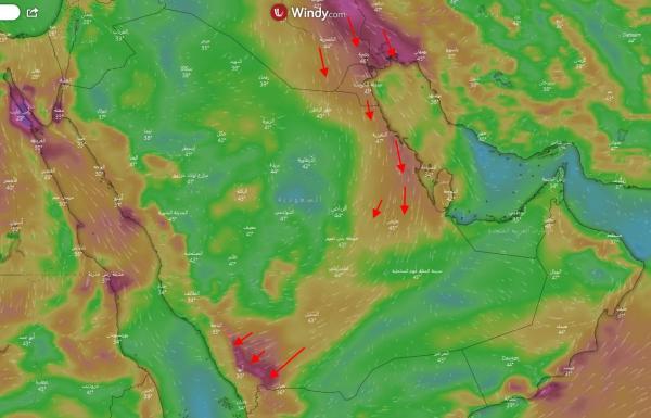 وتوقع الحصيني، عن حالة الطقس لليوم على المملكة ، “أن تنشط رياح البوارح الشمالية الحارة على المنطقة الشرقية وقد تثير بعض الغبار وتكون الرياح شرقية حارة ونشطة وقد تثير بعض الغبار على طول شرق جبال السروات، و أشار إلى أن هذه الأيام يبدأ موسم رياح البوارح الشمالية المؤثرة على حوض الخليج العربي بوجه عام.