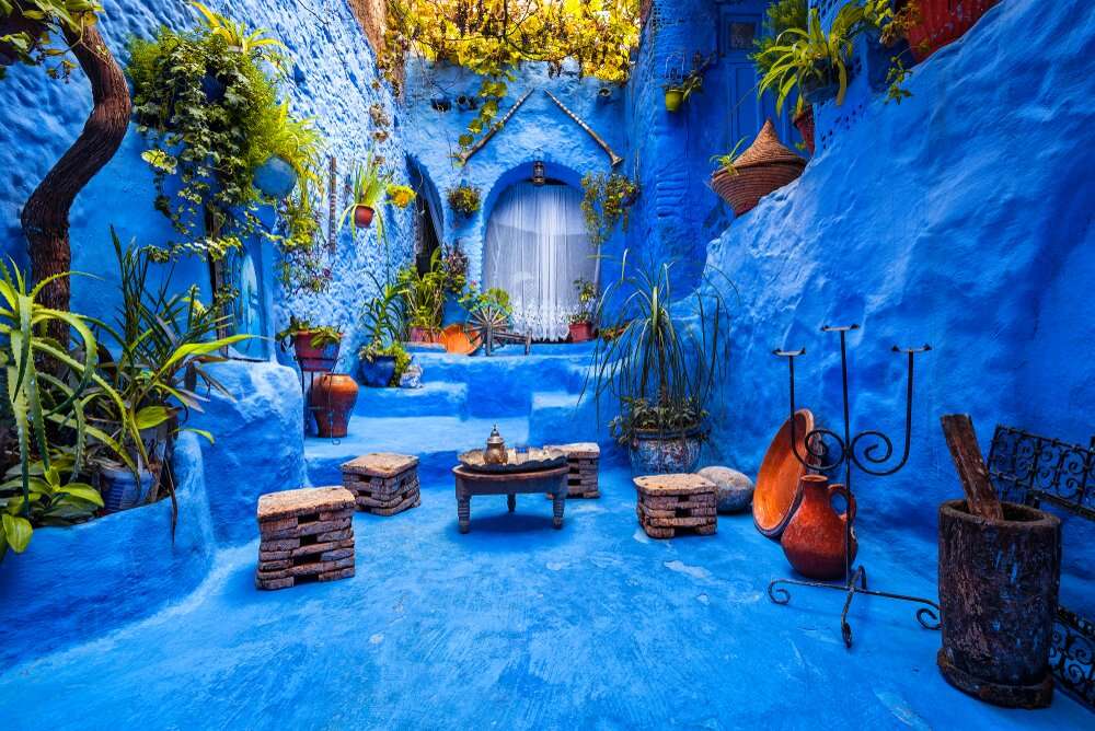 يرتبط اللون الأزرق أحياناً بالمساحات المفتوحة الواسعة، والتي بدورها تعزز الشعور بالحرية. وتثير الحدس والخيال الواسع. والإلهام والحساسية لدى المشاهد. كما أنه يحمل معاني عميقة ومؤثرة، ومنها: الحكمة، والاستقرار، والذكاء، والإيمان، وغيرها.