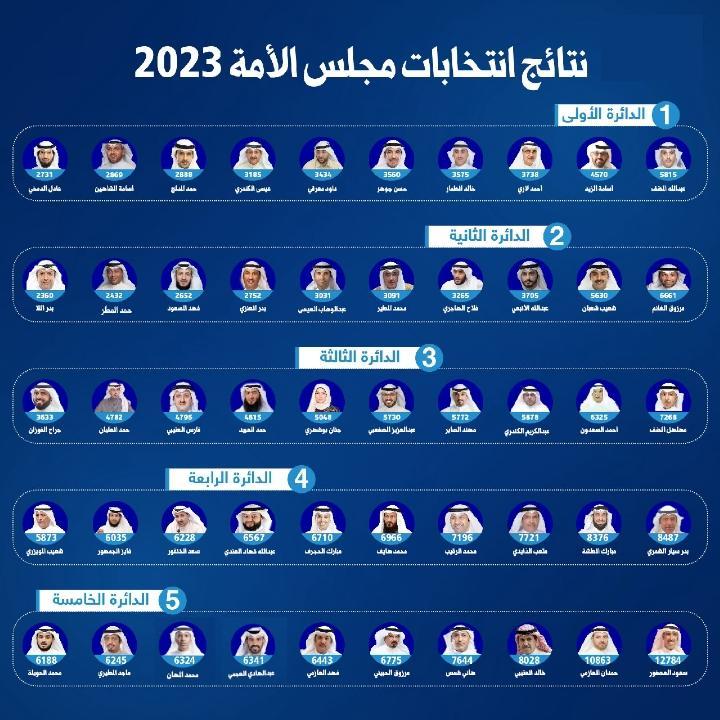 ‏النتائج النهائية للدوائر الخمس في ‎انتخابات مجلس الأمة 2023