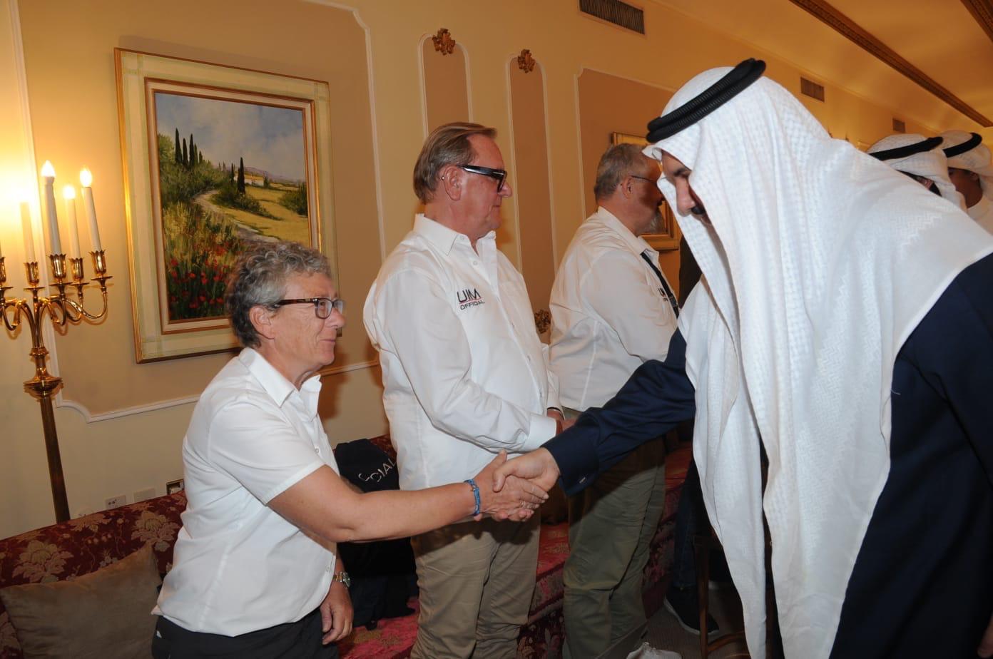 وفي مبادرة تعكس حفاوة الكويت، استضاف الرئيس الفخري للنادي البحري الكويتي الشيخ مبارك عبدالله المبارك الصباح الوفود الدولية المشاركة في القصر الأبيض، حيث رحّب بهم مؤكداً أن استضافة الكويت للبطولة “شرف كبير وحدث تاريخي يعكس اهتمام الدولة والقيادة السامية بالرياضات البحرية، وإصرار الشباب الكويتي على إبراز حضورهم في هذا المجال”. وأشاد بدعم الاتحاد الدولي وثقته بالكويت، مؤكداً استمرار الدولة في رعاية رياضة الزوارق السريعة وتوفير كل السبل لنجاحها.