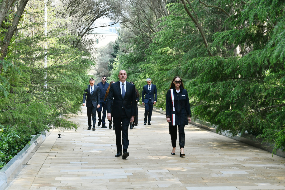 زار الرئيس إلهام علييف والسيدة الأولى قرينته مهربان علييفا وافراد اسرتهما ضريح الزعيم القومي.