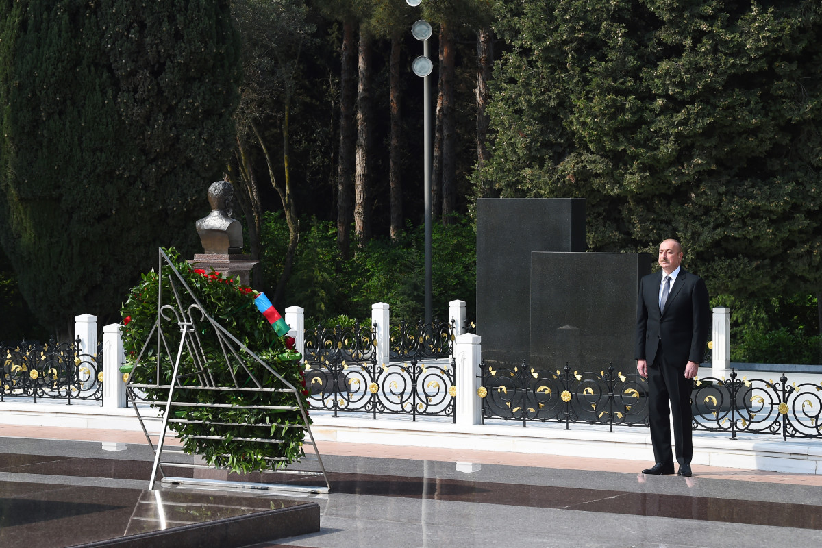 ووضع الرئيس إلهام علييف إكليلاً من الزهور امام ضريح الزعيم القومي حيدر علييف إحياء لذكراه الخالدة، وعزف النشيد الوطني لأذربيجان.