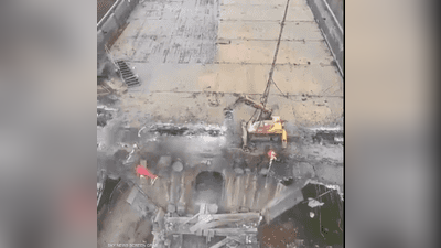 An airborne excavator demolishing a collapsed motorway bridge in Spain pic.twitter.com/C7YFx4Uq4m