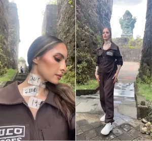 عبر حسابها على إنستغرام، شاركت إمسيح مقطع فيديو مرتدية زي الأسير، وهي تقف أمام تمثال جارودا ويسنو كينكانا في حديقة جارودا ويسنو كينكانا الثقافية ببالي الإندونيسية.