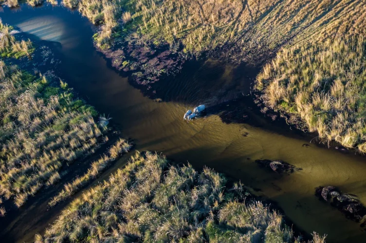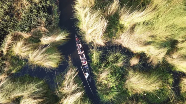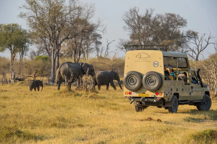 ومن هناك، يتواصل المسار نحو دلتا أوكافانغو الشهيرة، حيث يترك المشاركون سياراتهم ليخوضوا تجربة فريدة على متن قوارب “موكورو” التقليدية، منسابين بهدوء عبر الممرات المائية وسط طبيعة خلابة وحياة برية غنية.