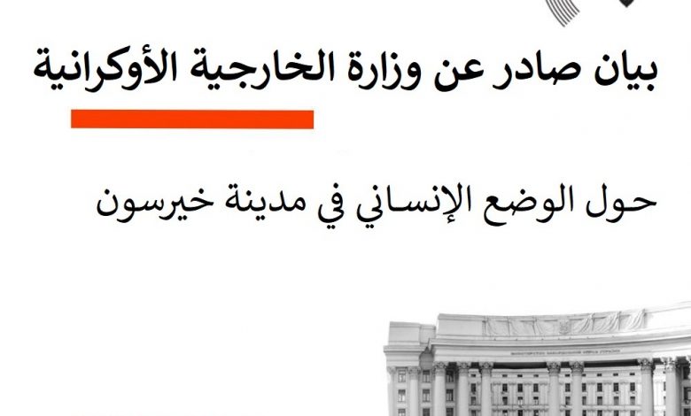 بيان صادر عن وزارة الخارجية الأوكرانية حول الوضع الإنساني في مدينة خيرسون