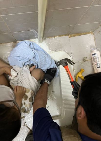 تحرير طفل انحشرت قدمه في دورة مياه بالمنقف