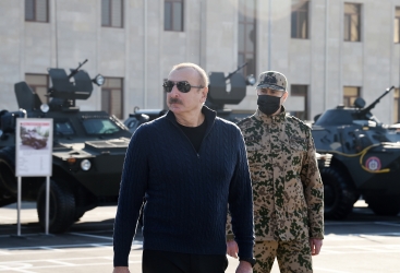 بعد ذلك تفقد الرئيس الأذربيجاني الأسلحة والذخائر والمعدات العسكرية المخصصة لقوات الأغراض الخاصة.