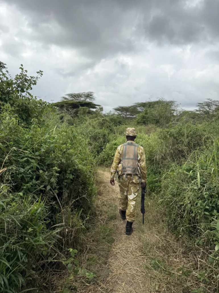 لكن التجول مشيًا يستوجب مرافقة حارس مسلح، تحسبًا لأي طارئ، إذ لا تزال الحيوانات هنا في بيئتها البرية الخالصة.