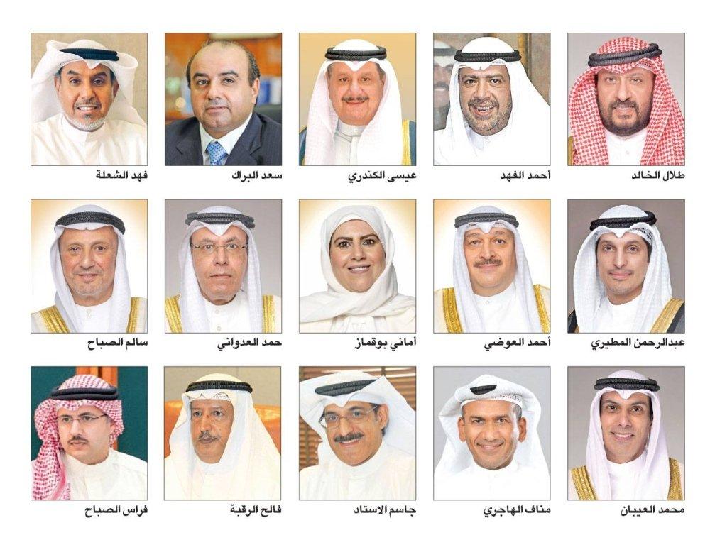 وزراء جدد • أحمد الفهد • عيسى الكندري • سعد البراك • جاسم الاستاد • فالح الرقبة • فراس الصباح وزراء غادروا • خالد الفاضل • بدر الملا • مي البغلي • عامر محمد • مطلق العتيبي وزراء مستمرون • طلال الخالد • فهد الشعلة • عبدالرحمن المطيري • أحمد العوضي • أماني بوقماز • حمد العدواني • سالم الصباح • محمد العيبان • مناف الهاجري 4 نواب لرئيس الوزراء و4 شيوخ وامرأة ضمت الحكومة الجديدة 4 نواب لرئيس مجلس الوزراء، هم النائب الأول طلال الخالد، والنواب: أحمد الفهد، وعيسى الكندري، وسعد البراك، كما تضمنت 4 شيوخ من أبناء الأسرة هم، بالإضافة إلى الخالد والفهد، وزير الخارجية سالم الصباح، ووزير الشؤون والأسرة والطفولة فراس الصباح. واقتصر التمثيل النسائي في الحكومة على الوزيرة أماني بوقماز، بعد مغادرة مي البغلي.