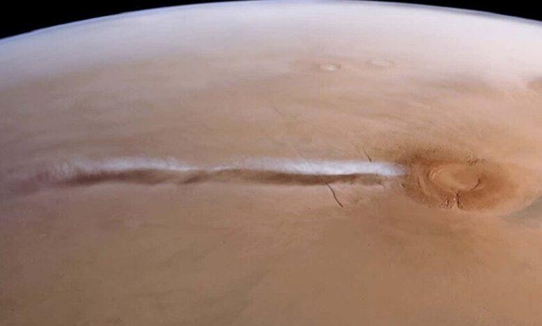 يعد المريخ كوكبا جافا وباردا، ولا يزال وجود الماء عليه موضع شك. لذلك، شكل ظهور سحابة منتظمة بطول يناهز ألفي كيلومتر فوق بركان “أرسيا مونس” لغزا حقيقيا للعلماء.