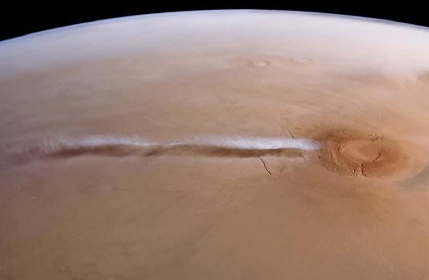 يعد المريخ كوكبا جافا وباردا، ولا يزال وجود الماء عليه موضع شك. لذلك، شكل ظهور سحابة منتظمة بطول يناهز ألفي كيلومتر فوق بركان “أرسيا مونس” لغزا حقيقيا للعلماء.