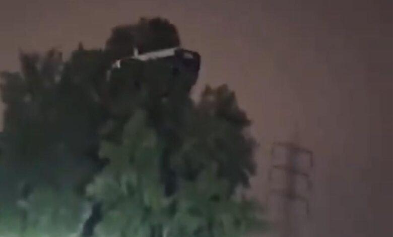 الأجهزة الأمنية، وبعد تلقي البلاغات حول الحادث، انتقلت على الفور إلى الموقع، حيث فوجئت دوريات الحركة المرورية في الإدارة العامة للمرور ومركز إطفاء الاستقلال بصحة البلاغ ووجود المركبة أعلى الشجرة، ليبدأ رجال الإطفاء التعامل مع هذا الحادث الغريب.
