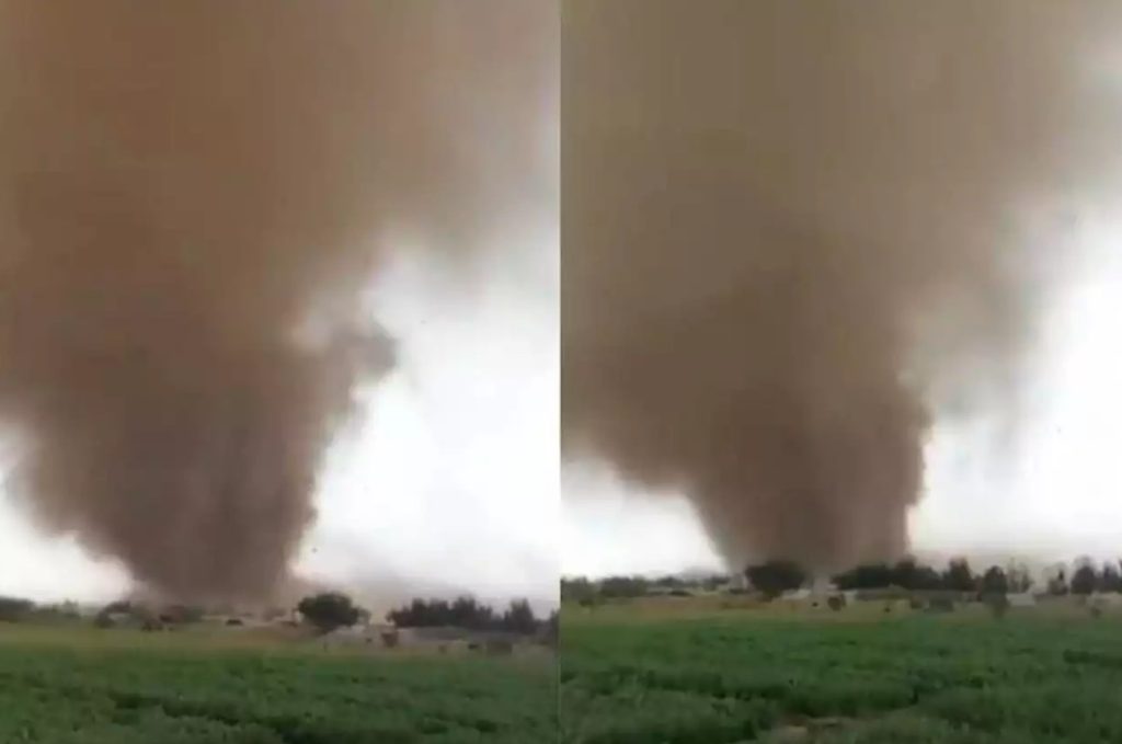 وثق مقطع فيديو لحظة تشكُّل إعصار قمعي في صحراء الطائف، ما بين السماء والأرض، مكونا حلقة كبيرة من الرمال.