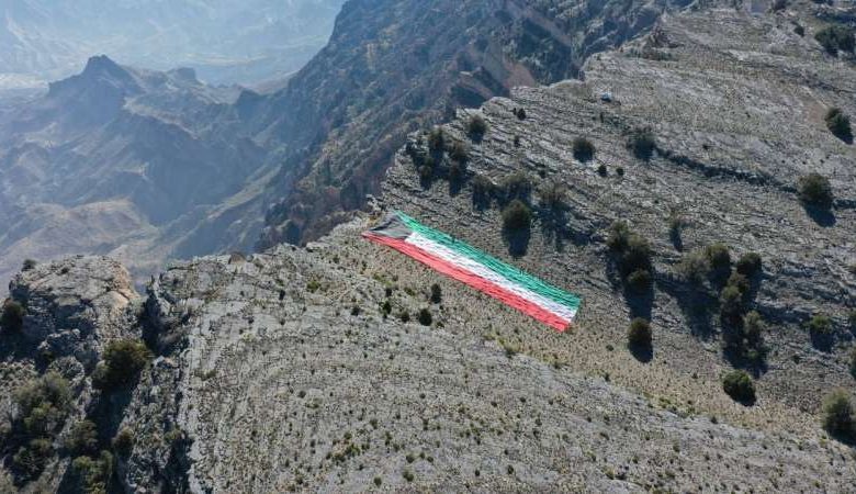 شاهد بالفيديو ..الكويت تدخل موسوعة غينيس برفع أكبر علم على جبل شمس