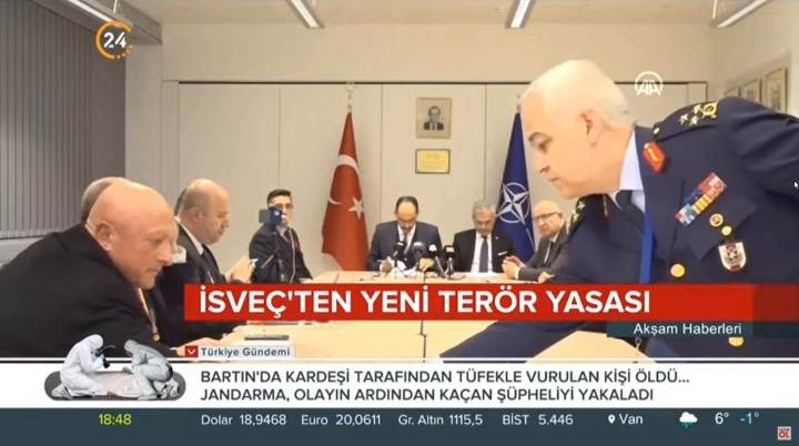 شهدت منصات التواصل الاجتماعي في تركيا حالة انزعاج عقب تداول فيديو يظهر قيام جنرال تركي بجمع أكواب الشاي الفارغة، أثناء اللقاء الثلاثي بين تركيا والسويد وفنلندا بمقر حلف الناتو.