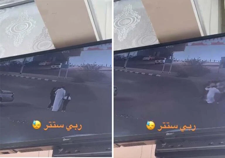 وأبان الفيديو الرجل وأطفاله يقفون على جانب الطريق ويستعدون لعبور الطريق، وانتظروا حتى غادرت إحدى السيارات وأثناء عبورهم جاءت سيارة يقودها صاحبها بسرعة عالية، فدفع الأب أطفاله بينما كاد يتعثر وتدهسه السيارة غير أنه نجا وأطفاله في آخر لحظة.