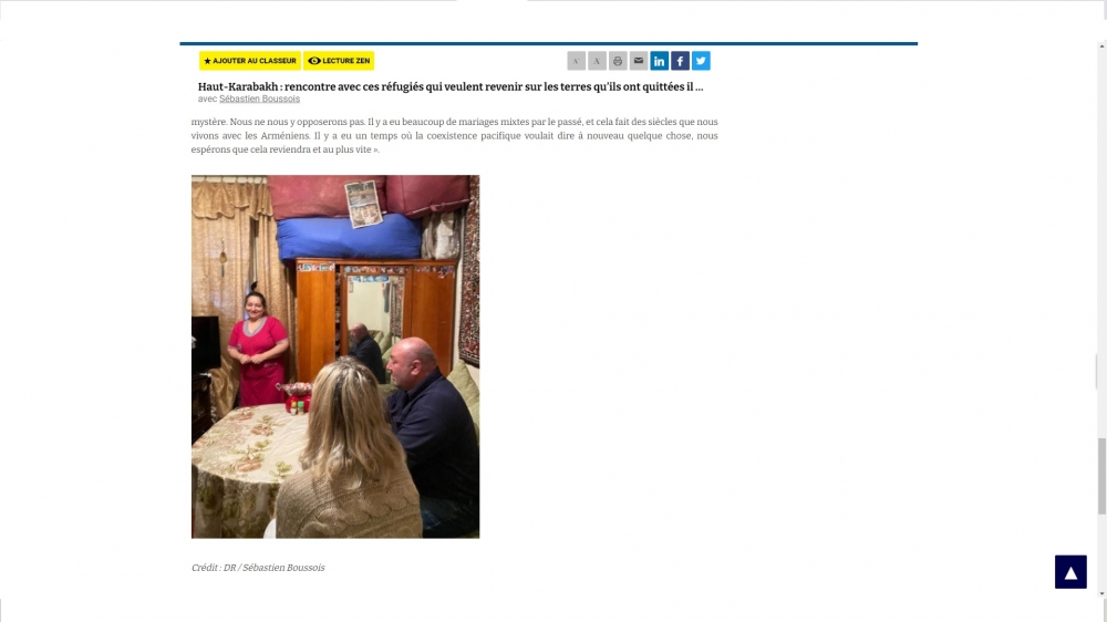 نشرت البوابة الفرنسية “آتلانتيكو” (Atlantico) مقالاً للصحفي سيباستيان بوسوا بعنوان “قره باغ الجبلية: لقاء مع النازحين الذين أرادوا العودة إلى الأراضي التي طُردوا منها قبل 27 عامًا”.