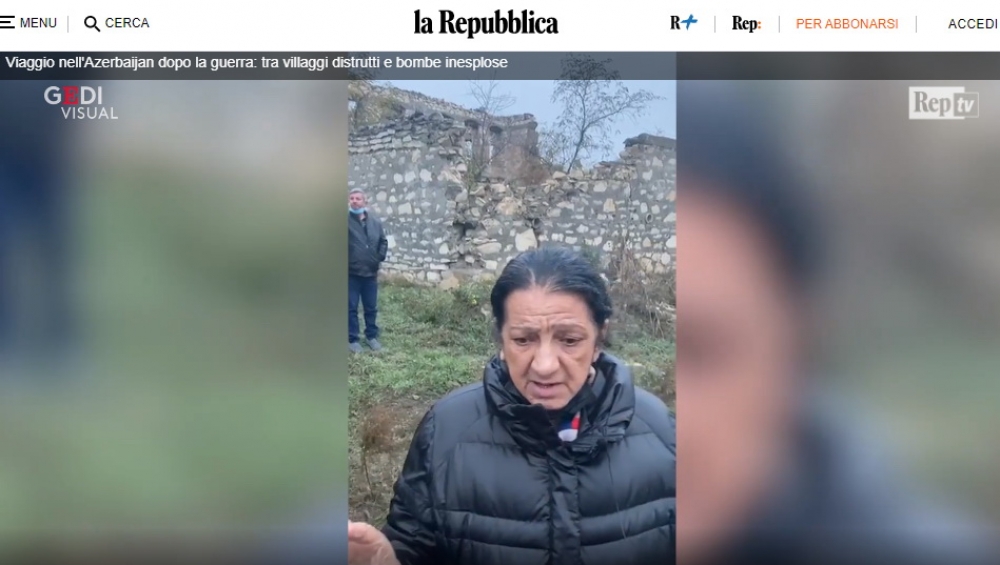 في 20 نوفمبر، نشر الموقع الإلكتروني لصحيفة “لا ريبوبليكا” الإيطالية المعروفة تقريراً مصوراً لمراسلها بيترو ديل رين (Pietro del Ren) الموفد إلى المنطقة بعنوان “رحلة إلى أذربيجان بعد الحرب: بين القرى المدمرة والقنابل غير المتفجرة”.