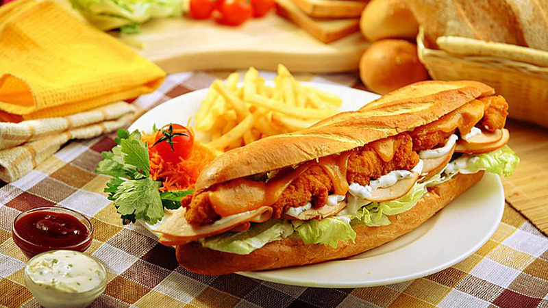5-إدهني الخبز بالمايونيز، ثمّ ضعي فيه الدجاج، الخس والطماطم وقدّميه.