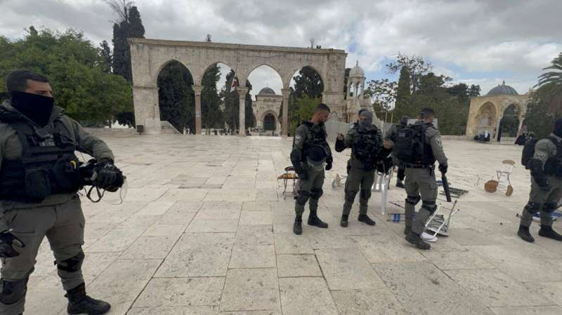 وقال شهود عيان إن شرطة الاحتلال حاصرت الشبان داخل المصلى القبلي في المسجد الأقصى وأطلقت الرصاص المطاطي وقنابل الغاز صوبهم، ما أدى لإصابة عشرات المصلين والمعتكفين بحالات اختناق، وجراء رشهم بغاز الفلفل، كما أصيب مسن برصاصة مطاطية بالرأس.