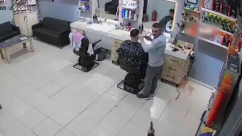 نجا شاب تركي من موت محقق على كرسي الحلاقة، بعد أن احتمى بزبون أثناء هجوم مسلح على صالون في محافظة سينوب التركية المطلة على البحر الأسود.
