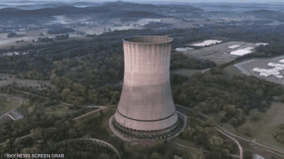 وفي مقطع فيديو متداول، ظهر هدم برج التبريد الذي يبلغ ارتفاعه 540 قدمًا لفتح المجال أمام تطويرات مستقبلية، وفقًا لما أعلنه مسؤولو الهيئة.