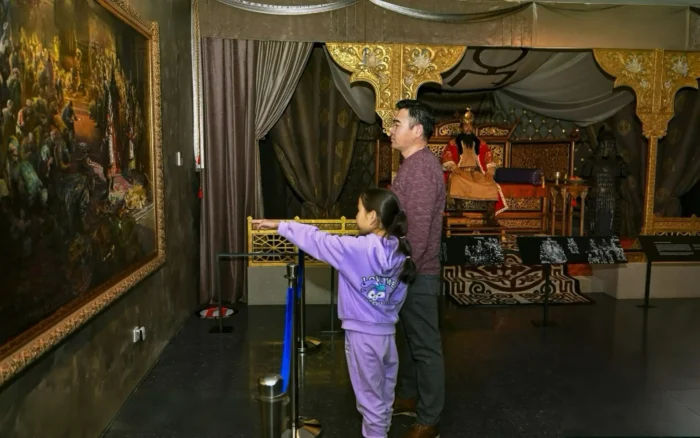 عند دخولك المتحف، ستشعر وكأنك تعود بالزمن إلى عصر الفتوحات الأسطورية، أسلحة ودروع أصلية تحكي قصص المحاربين المغول، ومعارض رقمية تفاعلية تُعيد الحياة إلى معاركهم وانتصاراتهم، بينما تبهرك الجداريات العملاقة التي تروي مسيرة القائد الأسطوري جنكيز خان.