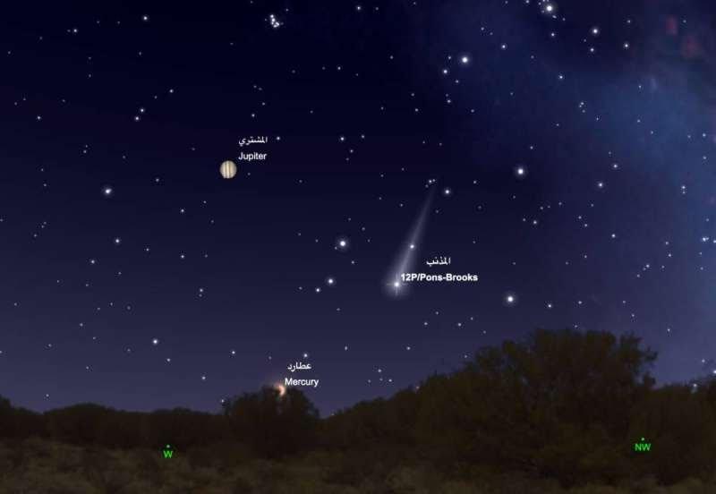 وقال مدير المتحف الفلكي خالد الجمعان، لوكالة الأنباء الكويتية (كونا)، إنه يمكن رؤية المذنب بالعين المجردة أو باستخدام منظار بسيط بعد غروب الشمس في الأفق الغربي من السماء في الأماكن البعيدة عن التلوث الضوئي.