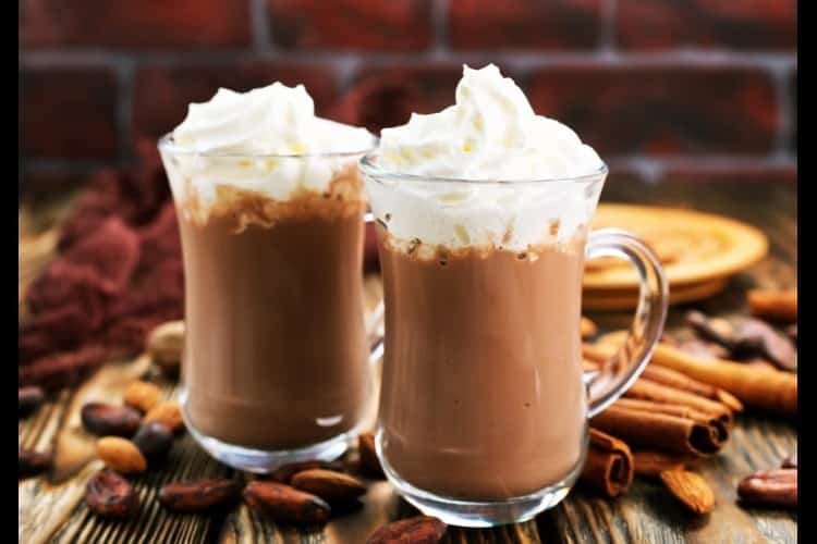 صبي الكاكاو الساخن على الكريمة المخفوقة وقطع الشوكولاتة، ستلاحظين بعد ثوانٍ أن الكريمة المخفوقة في الكوب ستظهر أعلى الكوب، ثم قدمي الشراب ساخناً.