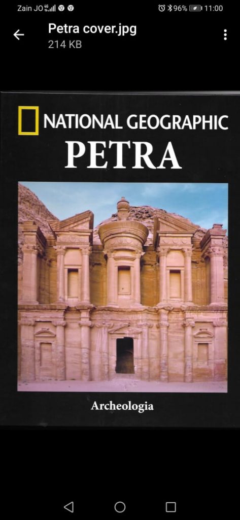 يذكر ان مجلة ناشيونال جيوغرافك وضعت البترا على غلاف مجلد ناشيونال جيوغرافيك المخصص للبتراء من 95 صفحة عارضة من خلال صفحات المجلة رحلة حقيقية عبر تاريخ لهذا المكان السحري وغير العادي مع صور رائعة ونسخ ثلاثية الأبعاد للمعالم الرئيسية ، مثل الخزنة والدير وطريق الأعمدة وقصر البنت والمقابر الملكية .