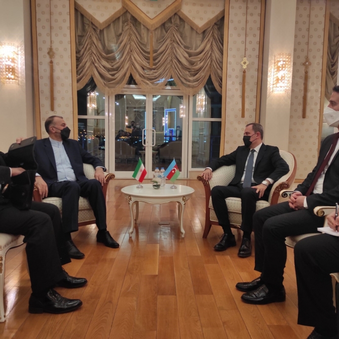التقى وزير الخارجية الأذربيجاني جيهون بايراموف 28 نوفمبر بنظيره الايراني حسين أمير عبدللاهيان على هامش اجتماع وزراء الخارجية للدول الأعضاء لدى منظمة التعاون الاقتصادي في عشق أباد.